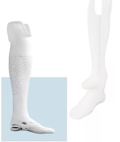 还有的企业通过选区激光烧结(SLS)与尼龙、尼龙玻纤、尼龙碳纤维等粉末材料制造假肢接受腔。例如,湖北省康复辅具技术中心研发的3D打印透气性接受腔一体化储能仿真小腿假肢。