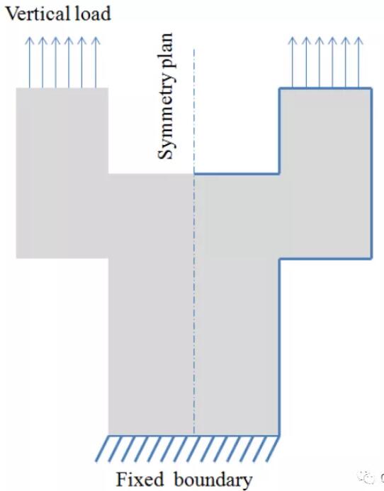 原始几何结构和边界条件(上)以及通过颜色对比定义最佳形状的杨氏模量分布(下)。