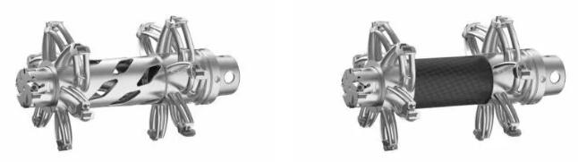 目前这款镗刀有两个版本,一种装有碳纤维管(如上图右图所示),重量为9.5千克;另一种装有3D打印金属管(如上图左图所示),重量为10.7千克。