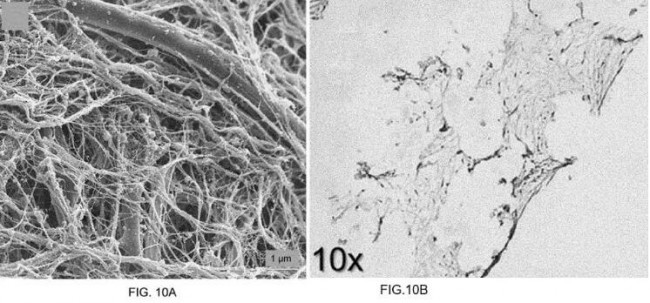 图10显示了hMSC在HAPCL支架上的胶原合成和沉积,如:(A)SEM;(B)组织学图像。hMSC在HAPCL中积极沉积胶原蛋白和其他细胞外基质元素。