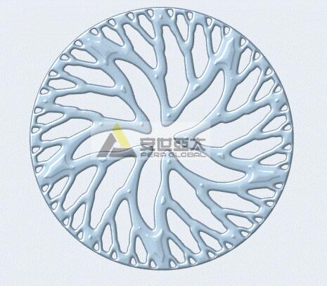 如果定义一种这样的几何关系:轮辐为成组的分支结构,分支节点位于一系列同心圆上,层间可以扭转,分组数、分支层数、扭转角、同心圆半径分别为在一定范围内可变的参数。那么,当我们改变任意参数的时候,就会生成不同的结果。