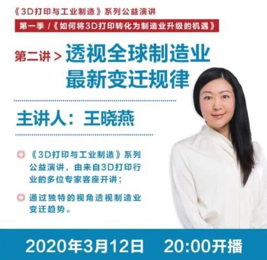 而针对于制造业附加值创造的新态势,王晓燕老师将深度剖析3D打印从颠覆产品的设计从而创造产品突出的性能优势,从产业链附加值创造领域的深刻变革来解释运用3D打印实现制造转型的必然性与迫切性。