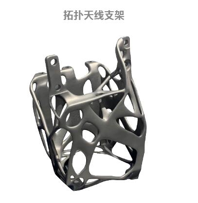 天线支架结构经过拓扑优化及一体化整合设计,对比传统机加件实现减重35%,应力集中状态得到缓解,峰值应力响应状态降低6%。零件内部尺寸精度高,TA15钛合金具备的高比强度及中等的高温力学性能使零件具有良好的承力能力及应力能力,符合航空航天等安全关键型应用要求。