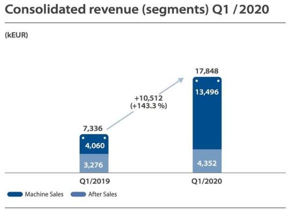 2016年SLM拒绝了来自能源行业巨头GE的收购邀约,不过经营一直时好时坏。2020年SLM则开了个好头,在一季度营收达到1780万欧元,相比去年同期的730万欧元涨幅达到143.3%。其中,硬件销售产生了1340万欧元,相比之下去年同期仅为400万欧元;售后服务部分的收入为430万欧元,比去年同期增长32.8%。