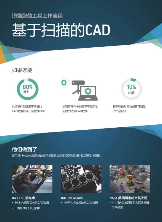 可为几乎所有尺寸、几何结构的零件实现可重复的生产品质。3D SYSTEMS将展示结合了增材和传统制造技术并与软件解决方案以及后处理系统整合的完整工作流。