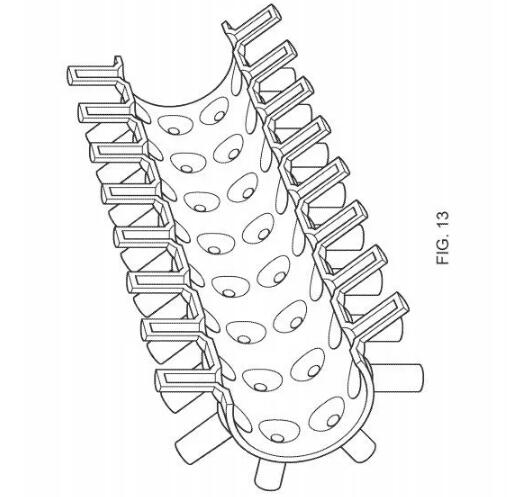 SES针翅式换热器专利,增加主管和针翅式热管之间的过渡区域的体积。来源:USTPO