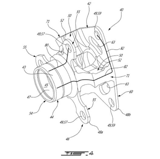图中40通过增材制造实现结构一体化制造。来源:US10760677B2