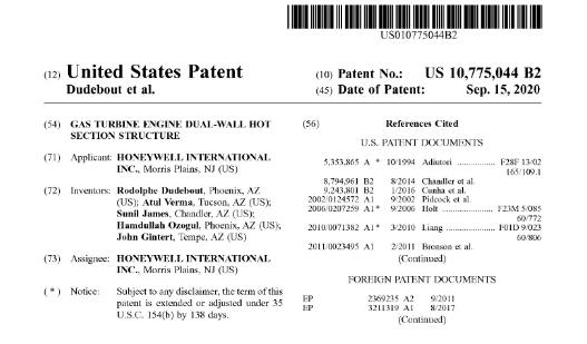 与常规的双壁结构不同,霍尼韦尔开发的双壁结构将冲击冷却和喷射冷却组合成单个结构。用于从热侧壁传导热量并减小热梯度,从而减轻了平面应力。这种设计还提供了最小的占地面积,相对于传统的双壁结构,潜在地减轻了重量。