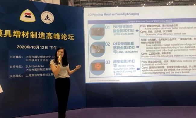 ACAM亚琛增材制造中心中国执行董事王晓燕女士做《正在跃升的3D打印技术成就更好的模具》主题演讲,分享了有关针对模具行业如何通过3D打印技术获取竞争优势并保持持续竞争力的精彩洞见,指出3D打印一方面成就了更复杂的随形冷却模具、复杂花纹轮胎模具等,另一方面3D打印正在快速替代部分注塑、铸造、锻造、金属注射成型,这两个方向值得模具制造商进行关注,以保持持续发展的竞争力。