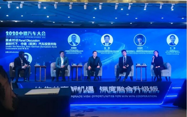 在中德(欧洲)汽车投资合作新时代分论坛上,渣打银行全球研究部经济学家申岚就中国宏观经济及汽车行业发展进行了分析与展望;上海保隆汽车科技股份有限公司总裁张祖秋介绍了后疫情时代中德汽车投资并购中的新挑战与新机会;蔚来德国总经理张晖以视频方式发表题为“中德汽车合作双引擎:新能源与智能化”的演讲。对话环节由晨哨集团副总裁罗小军主持,上海保隆汽车科技股份有限公司总裁张祖秋、上海华培动力科技(集团)股份有限公司副总经理冯轲、易麟投资管理合伙人、前戴姆勒-奔驰合资集团业务运营总经理林恪然、EAC-德国欧亚咨询合伙人方璐四位嘉宾就新时代中德(欧洲)汽车投资并购分享了专业观点。