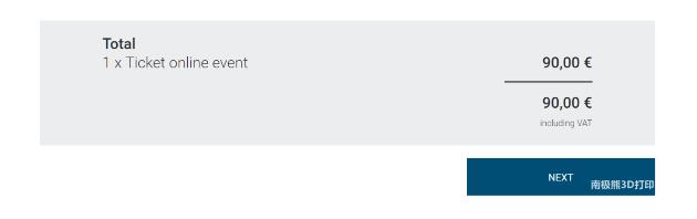 门票标价为90欧元(约700人民币),不过没关系,我们教你一招可以免费获得门票,我们点击“Ticket online event”下面的“+”号选择你所需要的门票数量,然后点击“Next”进入下一步。