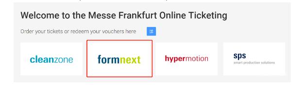 在弹出的下一页,选择“Formnext”,然后我们又回到了买票的页面。