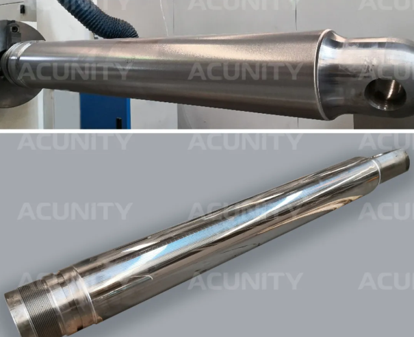 凭借自主研发的超高速激光熔覆系统以及核心工艺know-how, 使生产效率提升至0.8~1.6m²/h、粉末利用率超过95%。在煤机行业的众多产品中例如:大直径中缸、活柱,以及大长径比的推移、平衡活塞杆等,实现了24h连续、稳定、规模化生产。与此同时,经过不断优化工艺,涂层表面粗糙度目前达到了Ra 25μm,光滑平整的表面可直接进行抛光加工,相比于传统的车+磨+抛三次后处理,减少两道机加工工序,显著降低转运、机加和人工成本。
