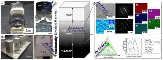 2,Additive manufacturing of a functionally graded material from Ti-6Al-4V to Invar: Experimental characterization and thermodynamic calculations,Acta Materialia,Volume 127, 1 April 2017, Pages 133-142,https://doi.org/10.1016/j.actamat.2016.12.070