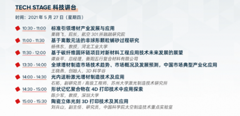 2021 TCT亚洲峰会同期活动之一TECH STAGE 科技讲台,邀请海内外各大院校以及研究机构为在场听众分享学术型研究案例,作为应用的前端让我们了解最新的研究成果及3D打印价值!
