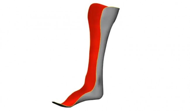 导出STL格式数据后,赛乐得医疗科技团队运用相关三维设计软件,对所得数据进行三维模型设计,设计人员根据患者腿部及足部的模型形状,制作出足托矫形器的外形。
