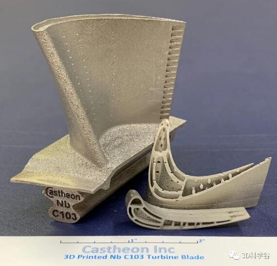 用铌等难熔金属 3D 打印复杂的双壁涡轮叶片的能力为显着提高发动机工作温度铺平了道路©Castheon