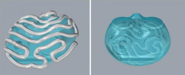 模具设计师在进行随形冷却流道设计时需要综合考虑冷热源位置、冷却效果、流阻等因素,有经验的模具设计师也要花费较长的时间进行设计、建模及绘图,再通过模流分析软件来验证效果。