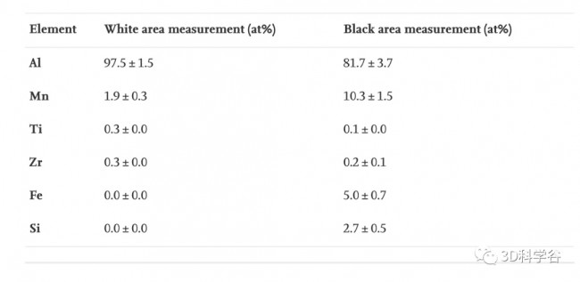表 4. 元素 白色区域测量 (at%) 黑色区域测量 (at%)