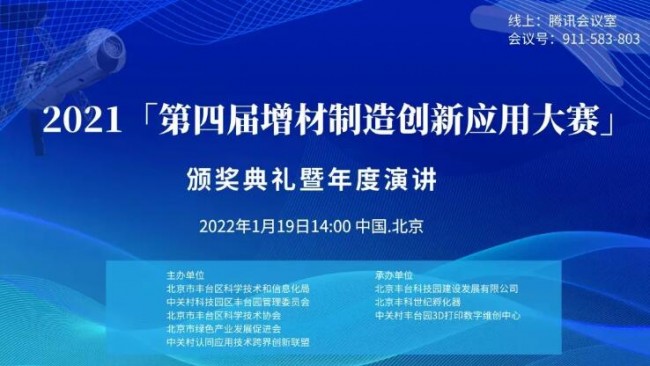 由北京市丰台区科学技术和信息化局、中关村科技园区丰台园管理委员会、北京市丰台区科学技术协会、北京市绿色产业发展促进会、中关村认同应用技术跨界创新联盟主办,北京丰台科技园建设发展有限公司、北京丰科世纪孵化器|中关村丰台园3D打印数字维创中心承办的“第四届增材制造创新应用大赛”,于2022年1月19日圆满落下帷幕。