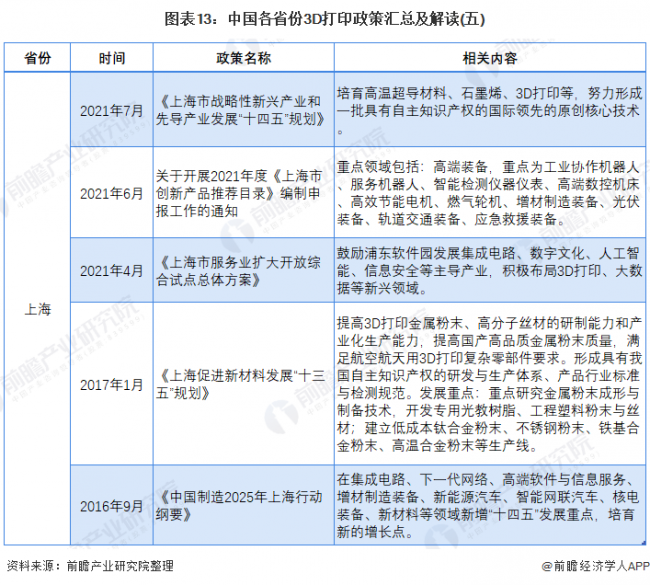 3、中国各省市层面3D打印行业政策汇总及解读情况