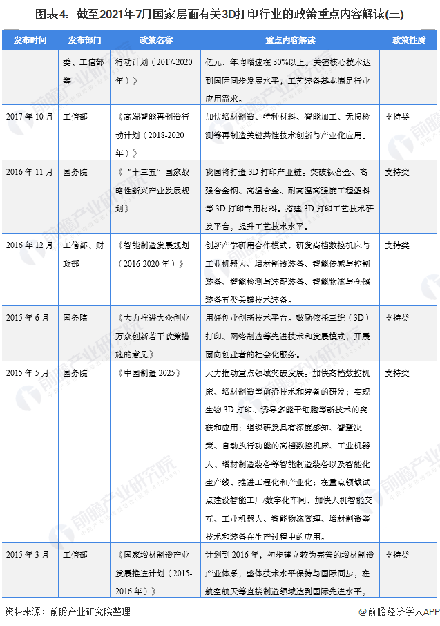 2、中国国家层面3D打印行业政策汇总及解读情况