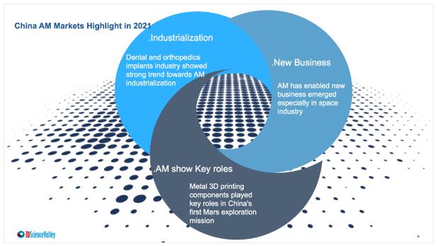 根据3D科学谷,2021年,中国的3D打印市场呈现出三大典型发展趋势:产业化、新商业模式涌现、金属3D打印开始扮演重要角色。中国的3D打印市场还出现了一个主流的长期发展重点:教育与人才建设。