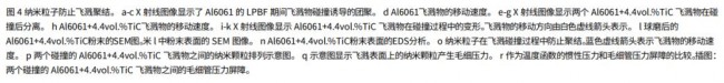 研究发现的第二个机制是纳米粒子在碰撞过程中阻止了液体飞溅物的聚结,从而消除了碰撞引起的大飞溅物。由于激光-粉末床相互作用区域周围的气流密集且混乱,因此在 LPBF 过程中,粉末碰撞经常发生。当熔池中的两个液体飞溅物发生碰撞时,两个飞溅物合并形成大飞溅物。碰撞引起的团聚是大飞溅物形成的主要机制,此前通过优化工艺条件或调整合金成分很难克服。然而,研究发现在 Al6061(添加4.4%TiC)的材料打印过程中,液体飞溅物可以在碰撞后立即分离,碰撞的唯一后果是它们的移动方向和速度的变化。