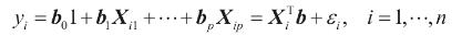 线性回归模型假定因变量y与回归变量X的p向量之间的关系是线性的。这种关系是通过扰动项ε建模的,扰动项是一个未观察到的随机变量。