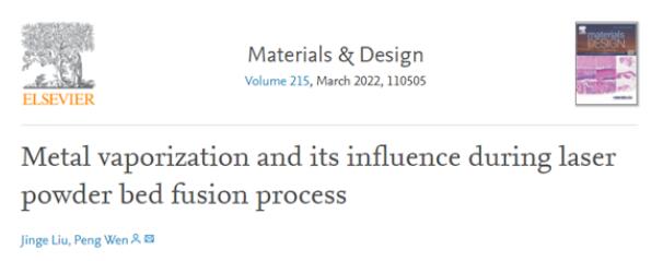 Liu Jinge, Wen Peng. Metalvaporization and its influence during laser powder bed fusion process[J].Materials & Design, 2022: 110505.