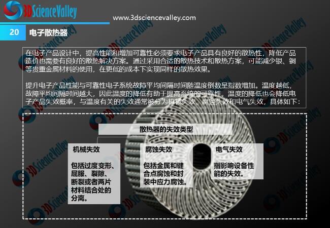 3D科学谷《3D打印换热器及散热器白皮书第三版》从换热器与散热器的分类与市场情况入手,详细剖析了3D打印在换热器与散热器领域的技术优势,国际上和国内商业化的3D打印散热器与换热器案例,国际上和国内的代表性专利情况,CFD软件情况、材料考虑以及后加工考虑等等。