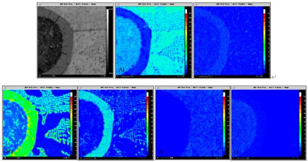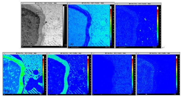 图7 浸渗温度930℃下SiC/Al复合材料微观组织的电子探针面扫描