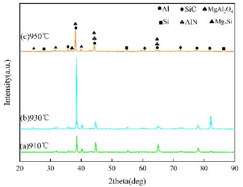 (2)SiC/Al-Mg复合材料的物相组成除了SiC和Al合金外,还有反应生成的Mg2Si、MgAl2O4和Si相等。