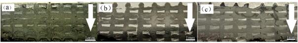 SiC预制体由φ0.8mm的挤出丝分层堆积而成,分层厚度为0.6mm。3D打印SiC预制体具有层级结构的多孔结构,宏观上是由挤出丝构成的多孔网络结构,挤出丝内部是SiC颗粒构成的微孔网络结构,合金熔体浸渗不仅要填充SiC挤出丝间的大孔网络,还要渗入SiC颗粒间的微孔网络,才能形成致密的复合材料。