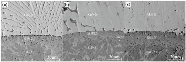 制体实际上是由表面覆盖有SiO2的SiC颗粒组成的。SiC表面的SiO2氧化膜可以阻止SiC和Al熔体的直接接触,有效抑制了界面脆性相 Al4C3的形成,故而改善了复合材料的性能。由于SiO2与铝合金的润湿性比SiC更好,SiC颗粒表面的SiO2层也有助于铝合金熔体的浸渗以及减少界面缺陷。