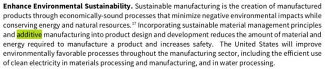 与2022年早些时候 OSTP 对关键和新兴技术国家战略的更新一样,3D打印行业迅速崛起的发展势头和对投资的吸引力在先进制造业国家战略( NSAM) 中都很明显。总体而言,后一份报告可能提供了迄今为止最全面详细的总结,涉及美国政府设想的增材制造将在美国制造业未来发挥的作用。