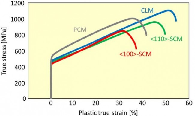 不同晶体结构哈氏合金的应力-应变曲线如图 5 所示。研究还针对不同晶体结构哈氏合金的拉伸性能进行了研究,研究结果说明基于 LPBF 工艺制成的合金可用于实际的生产制造。