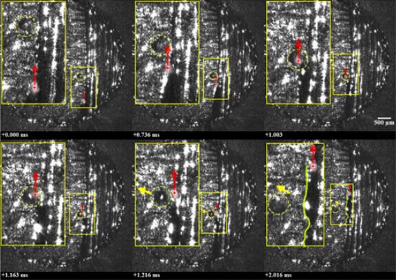 研究人员使用对粉末床融合过程的直接、高速观察,最终分类和阐明了形成大(远大于原料粉末的质量中值直径)喷射物的三种机制:来自遥远位置的喷射物的碰撞和合并;相邻的、几乎同时排出的喷射物之间的碰撞和合并;蒸汽羽流使部分烧结的团聚体聚结。