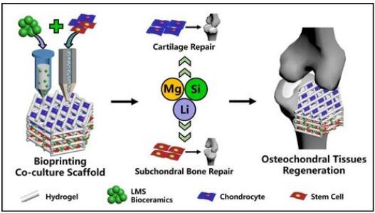 开发了基于LMS生物陶瓷的生物墨水,利用多细胞3D打印技术制备仿生骨-软骨双层多细胞支架促进骨-软骨组织再生