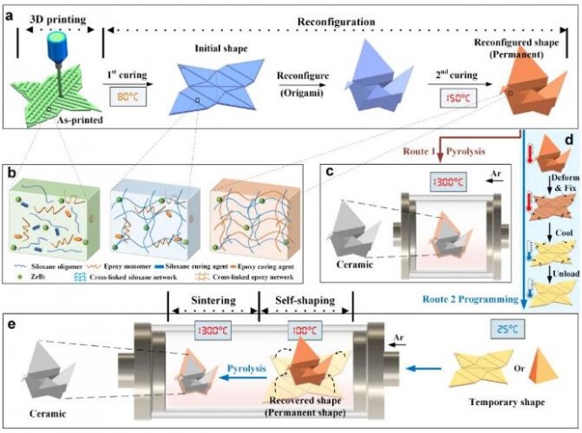 图1. 从可重赋形和编程的陶瓷前驱体制造复杂结构陶瓷示意图。