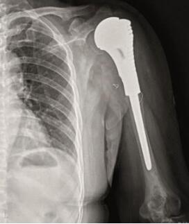 患者,男性,左侧半肩关节置换术后5年,因“疼痛伴活动受限”收入我院(图5)。