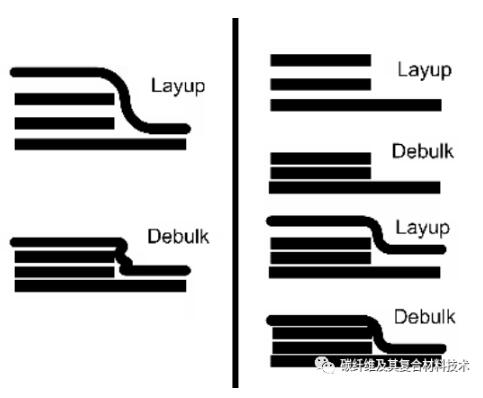 有时使用压辊或真空袋进行压实或减压操作,这样的技术可以提高纤维含量,还可以防止起皱等问题。考虑下面的例子,如果下层未先被弄皱,外层容易起皱。