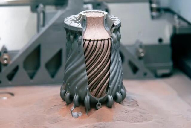 通过3D打印过程将两种材料分散熔合在一起,两种材料内部晶粒产生粘结,使得任何硬质过渡都被消除,从而零件不会在巨大的压力和温度梯度变化下发生断裂情况。