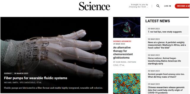 Michael Smith et al.Fiber pumps for wearable fluidic systems.Science.VOL. 379, NO. 6639