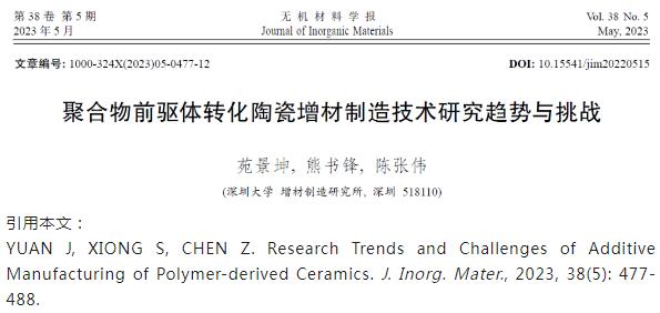 引用本文:YUAN J, XIONG S, CHEN Z. Research Trends and Challenges of Additive Manufacturing of Polymer-derived Ceramics. J. Inorg. Mater., 2023, 38(5): 477-488.