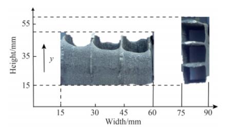 图2 9Cr18Ni12/WC10Co4Cr复合材料流道的宏观形貌