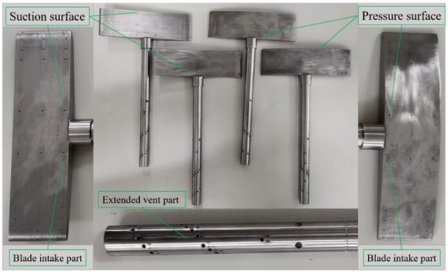 为了探究可调叶片扩压器的调节机制,并揭示扩压器叶片在变工况下的载荷分布规律及扩压机理,中国科学院工程热物理研究所储能研发中心设计并采用3D打印增材制造方式加工了应用于100MW先进压缩空气储能系统压缩机的可调扩压器。该研究基于实际测试环境采用选区激光熔融工艺进行金属3D打印,有效缩短了传统工艺加工周期,并突破了内流引压通道加工瓶颈。加工完成的扩压器叶片部件通过了型面误差检测,确保其高精度。