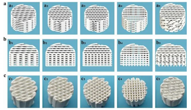 功能陶瓷具有耐高温、耐腐蚀和高硬度等特性,在航天航空、生物医学和精细化工等领域受到广泛关注。然而,功能陶瓷由于其特殊的高熔点和高脆性等,无法采用传统加工技术制备出复杂、高精度结构。因此,结合增材制造技术快速构筑复杂结构陶瓷,实现其快速精密加工制造,并通过结构设计改善其性能具有重要意义。