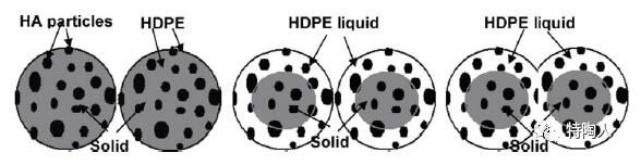 图2 SLS过程中羟基磷灰石 (HA) 和聚乙烯 (HDPE) 粒子间连通性的形成