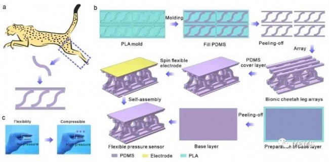 - 本工作设计了一种基于仿生猎豹腿微结构的电容式压力传感器,验证了仿生微结构设计的优点,并使用3D打印技术优化了结构特征参数。